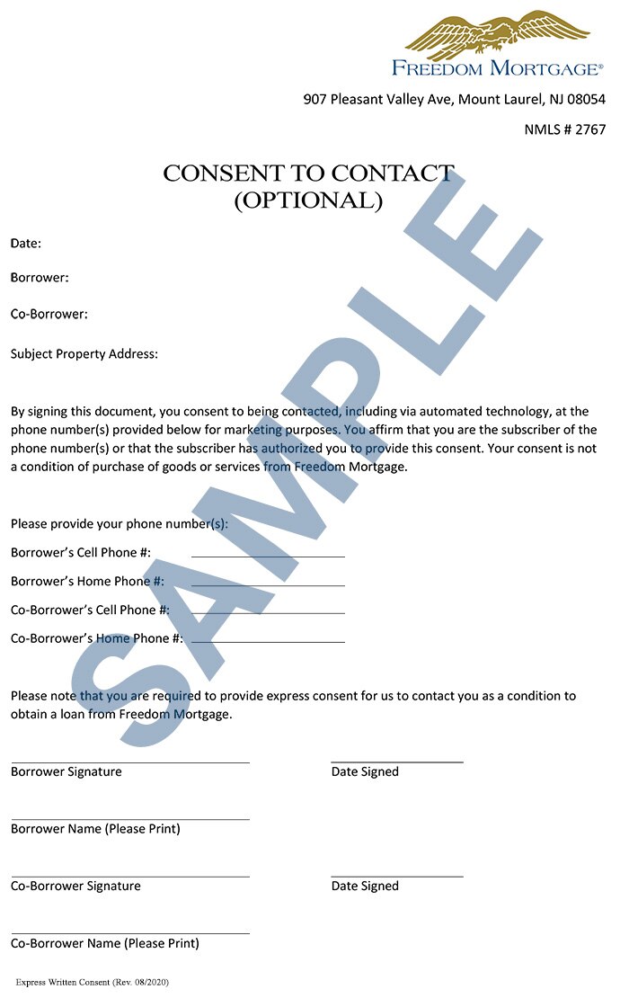 Mortgage FAQ Consent to Contact Freedom Mortgage